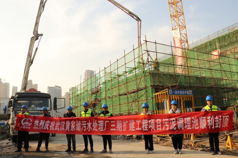 12月22日,黃家湖污水處理廠三期擴建工程施工總承包項目污泥調理池順利封頂。