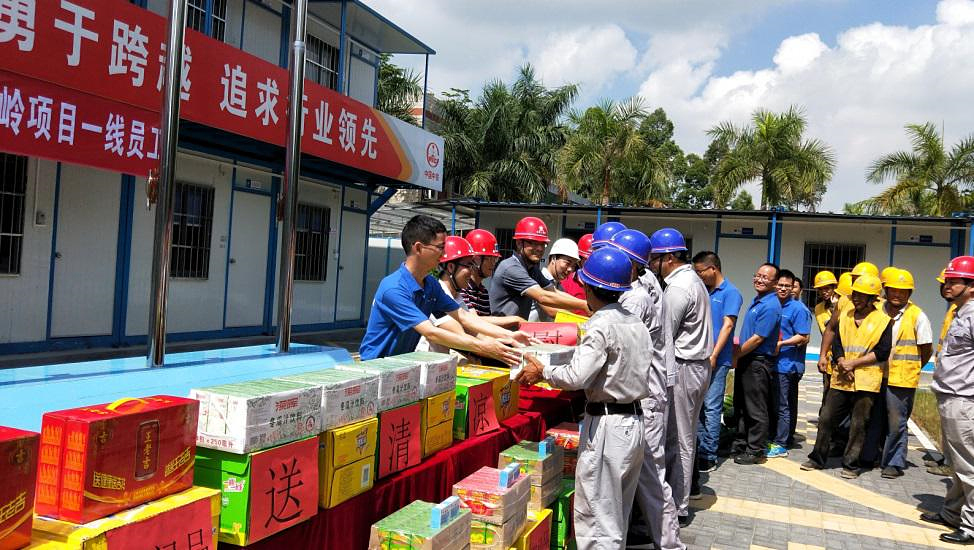 5月21日上午,北控橫嶺項目部項目經理梁振澤、橫嶺廠廠長萬巍一行到橫嶺污水處理廠一期提標改造工程項目部為一線員工送清涼,揭陽項目經理凌利云、黨支部書記劉軍陪同,項目部全體員工及部分外協隊伍代表參加了本次活動。